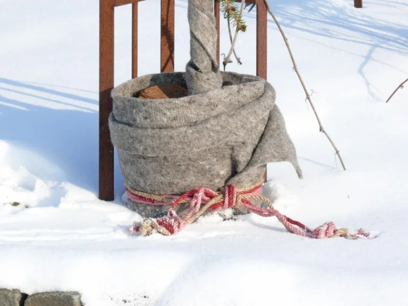 Diese Winterschutzmatte aus reiner Schafwolle hat beste Wärmedämmeigenschaften um die Wurzeln von Kübelpflanzen vor zu schnellem und wiederholten Durchfrieren zu schützen. Die Schafwollmatte hat ein optimales Feuchteverhalten und bietet so besonderen Schutz vor Kälte und Frost. Die Winterschutzmatte besteht aus fest vernadeltem Schafwollfilz.