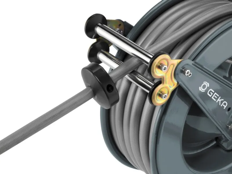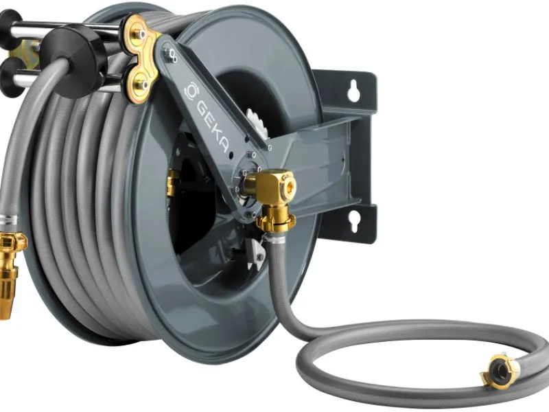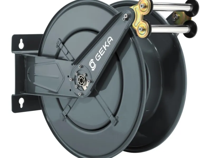 Der Geka Schlauchaufroller ist fertig montiert und sofort einsatzbereit. Ermöglicht einen optimalen Wasserdurchlauf für Schläuche bis 3/4″.