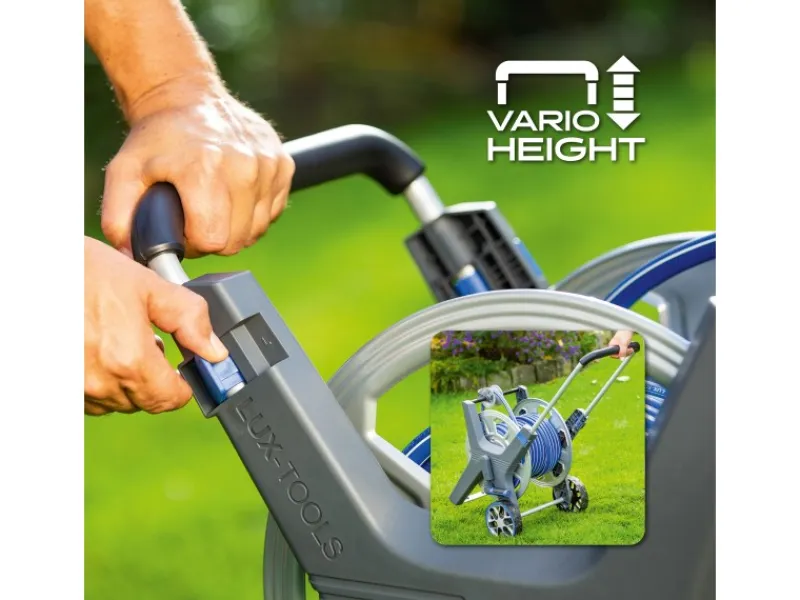 Das Schlauchwagen-Set von LUX-TOOLS unterstützt dich bei der Bewässerung deines Gartens, denn der Schlauch lässt sich durch die flexible Schlauchtrommel leicht auf- und abrollen und bietet dir eine saubere und ordentliche Schlauchaufbewahrung.