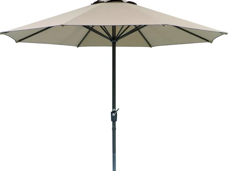 Mithilfe einer Kurbelmechanik lässt sich der Schirm bequem öffnen und schließen. Die Höhe des Sonnenschirms beträgt maximal 250 cm.