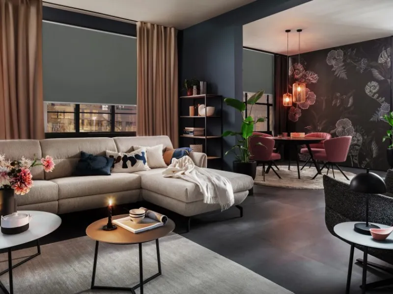 Die Bedienung erfolgt mühelos mithilfe einer transparenten Kette, die wahlweise rechts oder links zusammen mit dem Seitenzuggetriebe montiert werden kann. Die Rollotechnik und die Abschlussleiste in Weiß sorgen für eine edle Optik. Die flexible Montagemöglichkeit ermöglicht es, das Rollo an der Wand, Decke oder in der Fensternische zu befestigen. Alternativ können Sie es mit verstellbaren Klemmträgern am Fensterflügel befestigen. Auch die praktische Klebe-Montage ist möglich.