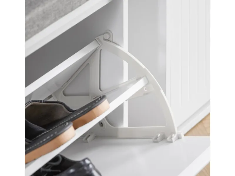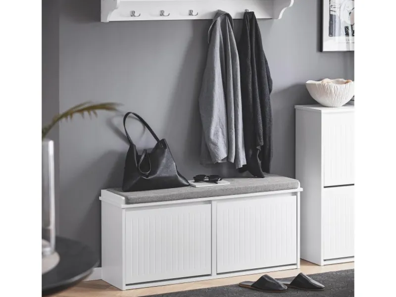Dank der vielseitigen Schuhbank ist das schnelle An- und Ausziehen von Schuhen im Flur ein wahres Vergnügen.