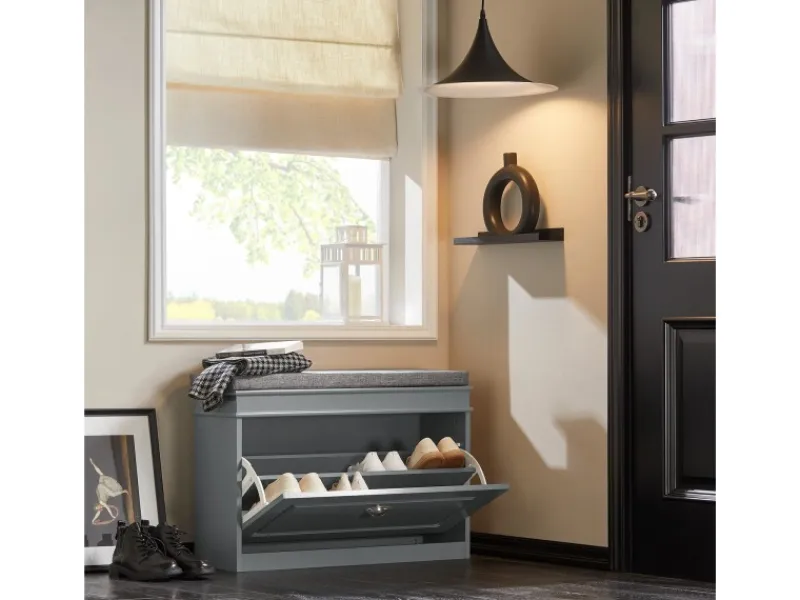 Dank der vielseitigen Schuhbank ist das schnelle An- und Ausziehen der Schuhe im Flur bequem.