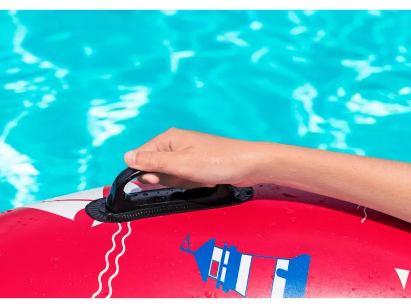Die robusten Haltegriffe erleichtern das Ein- und Aussteigen enorm und sorgen für zusätzliche Sicherheit im Wasser. Der Schwimmring hat ein praktisches Design und lässt sich leicht aufblasen, entleeren und aufbewahren, damit der Spaß in der Sonne auch in den kommenden Jahren weitergehen kann. Freuen Sie sich auf unbeschwerte Stunden im Wasser mit diesem strapazierfähigen und ansprechenden Schwimmring.