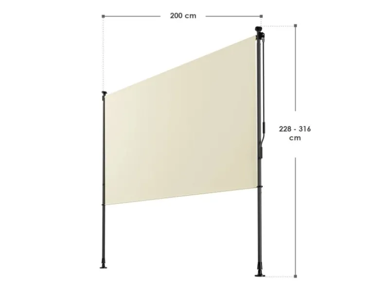 Die höhenverstellbaren Elemente ermöglichen eine flexible Anpassungen der Markise an nahezu jeden Balkon oder Fensterfront – einfach und unkompliziert.