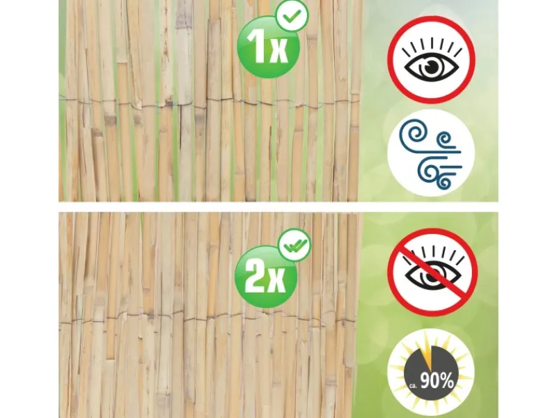 Doppelt gelegt bietet die Schilfrohrmatte absoluten Sichtschutz. Einfach gelegt schützt sie vor Wärmestau an heißen Tagen, ideal als Dach für Pergola und Terrasse.