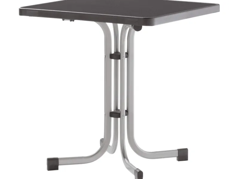 Der Tisch lässt sich zusammenklappen und somit platzsparend verstauen. Im Handumdrehen kann er einfach auf- und abgebaut werden und ist immer dann einsatzbereit, wenn du ihn brauchst. Durch das robuste Gestell aus Stahl kann der Tisch einfach im Außenbereich aufgestellt werden.
