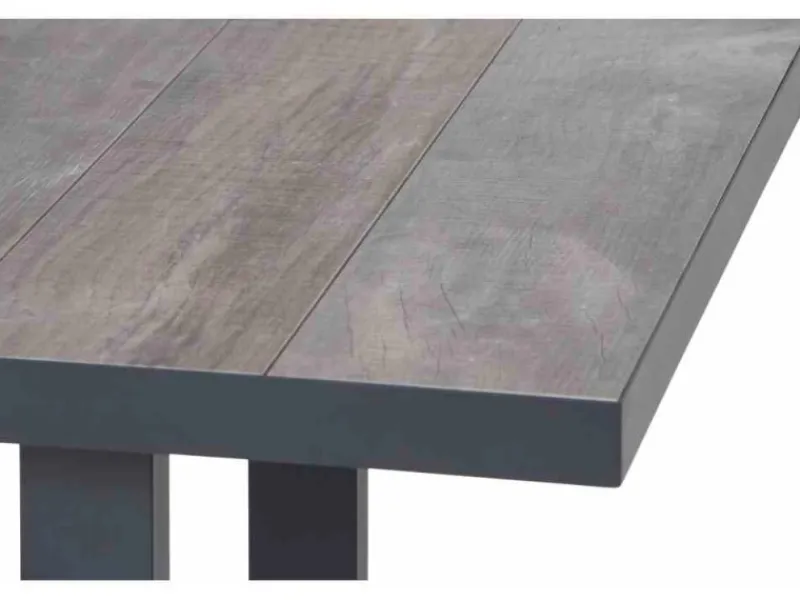 Mit einem Gestell aus Aluminium verleiht der Tisch eine rustikal Optik. Die Tischplatte aus Keramik rundet das Gesamtbild ab. Mit einem modernen Design ist der Tisch optisch sehr ansprechend und verleiht deinem Außenbereich das gewisse Etwas. Durch das robuste Gestell aus Aluminium kann der Tisch einfach im Außenbereich aufgestellt werden.