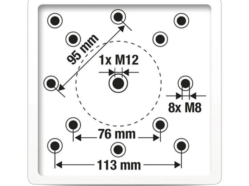 Lochabstand der Bodenplatte 76, 95 oder 113 mm