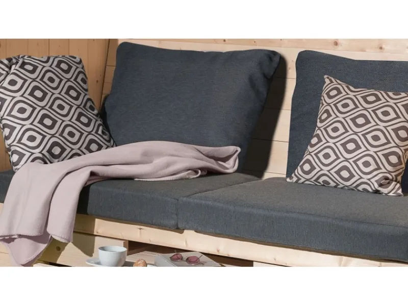 Das moderner Weka Sitzkissen-Set für die Gartenlauben Merano und Bozenauch sind schick und praktisch und eignen sich optimal für den Außenbereich. Das Set besteht aus 2 Sitz- und Rückenkissen sowie zwei Zierkissen. Ebenso wie die Gartenlaube, werden Ihnen auch die Kissenbezüge ein wohliges Gefühl bereiten.