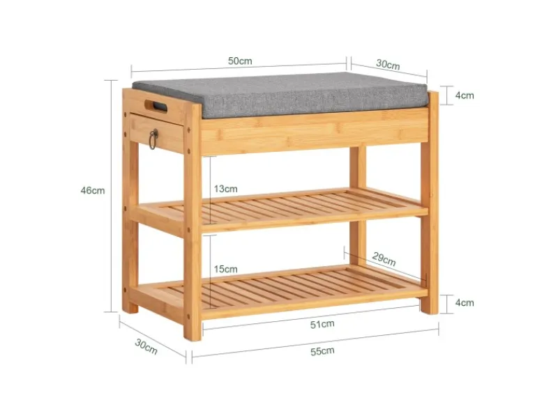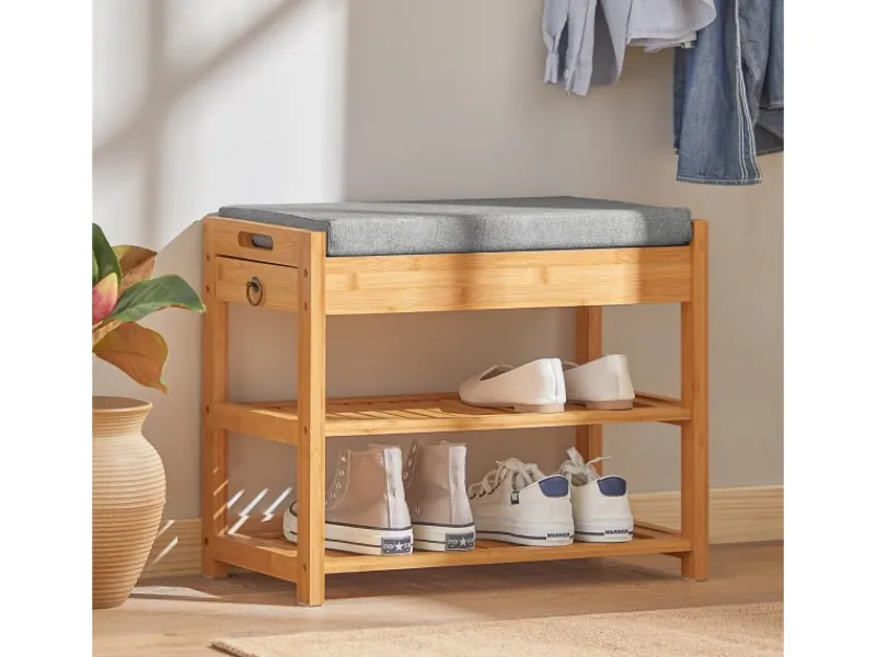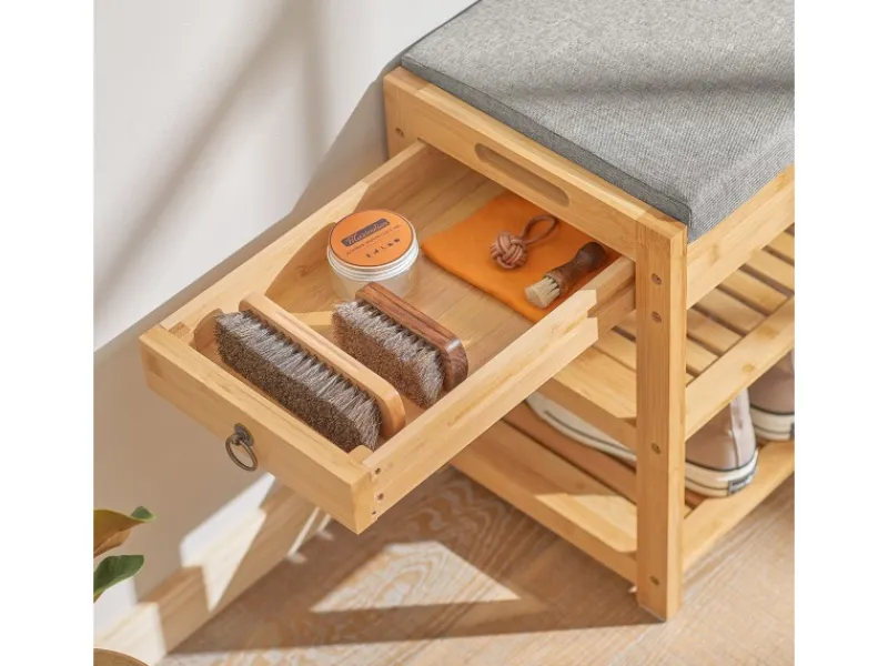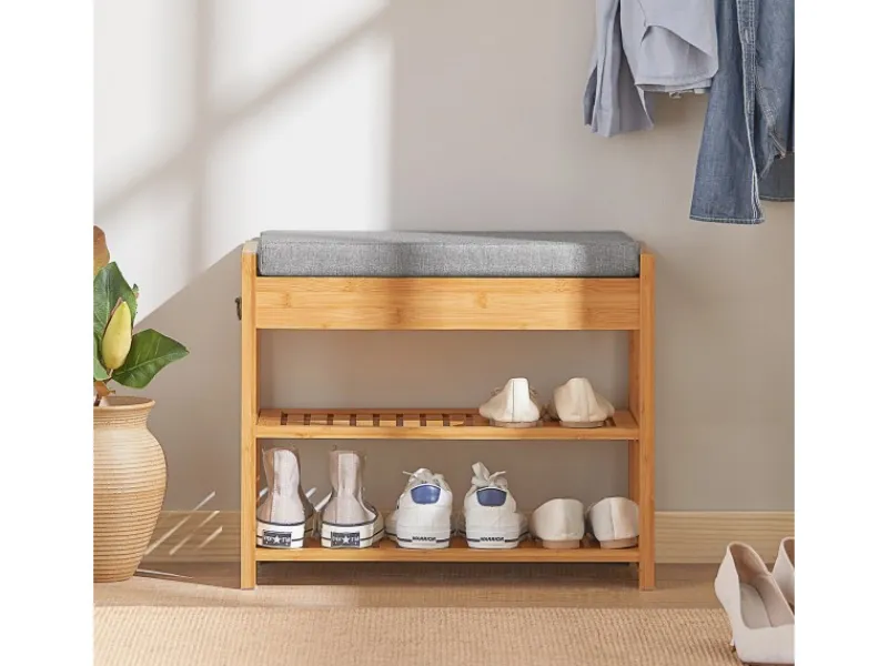 Dank des Sitzkissens kannst du dich deine Schuhe bequem an- und ausziehen.