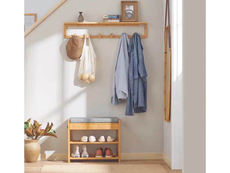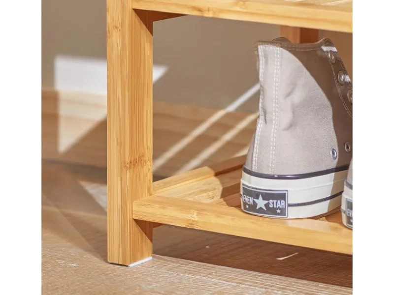 Mit geräumigen Aufbewahrungsfächern unter der Sitzfläche: ideal zum platzsparenden verstauen deiner Schuhe.