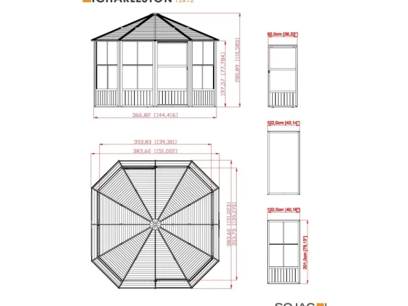 Der Aufbau erfolgt durch mindestens 2 Personen mit Hilfe von handelsüblichen Werkzeugen sowie einer detaillierten Schritt-für-Schritt Anleitung. Die Schiebetüren können flexibel auf allen Seiten montiert werden. Zu beachten ist, dass je nach Seite nur eine Tür eingesetzt werden kann. Aufbauzeit ca. 6 Stunden. Der Rahmen wird durch Schrauben und Dübeln (nicht im Lieferumfang enthalten) am bestehenden Untergrund befestigt.