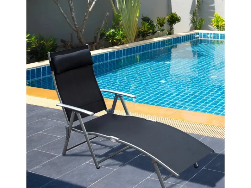 Sonnenliege mit Kissen Tragfähig bis 165 kg Schwarz*Outsunny