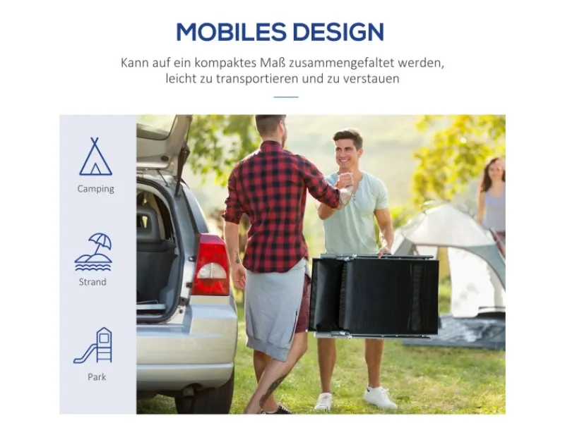 Das pulverbeschichtete Metallgestell und der robuste Texteline-Stoff sorgen für Stabilität.