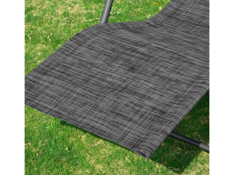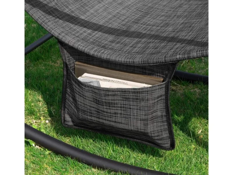 Die bequeme Liegefläche aus Kunstfasergewebe lädt ausgiebigen Relaxen ein, während Gummiüberzüge den Rahmen zu einer angenehmen Armablage verwandeln