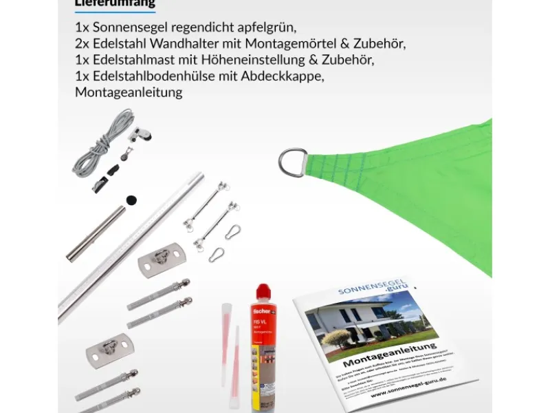 Sonnensegel Komplettset 4,6×4,6×6,5m UPF50+ mit Befestigungsmaterial Halterung Pfosten Mast & Zubehör Regendicht Sonnenschutz Apfel*Toldoro Discount