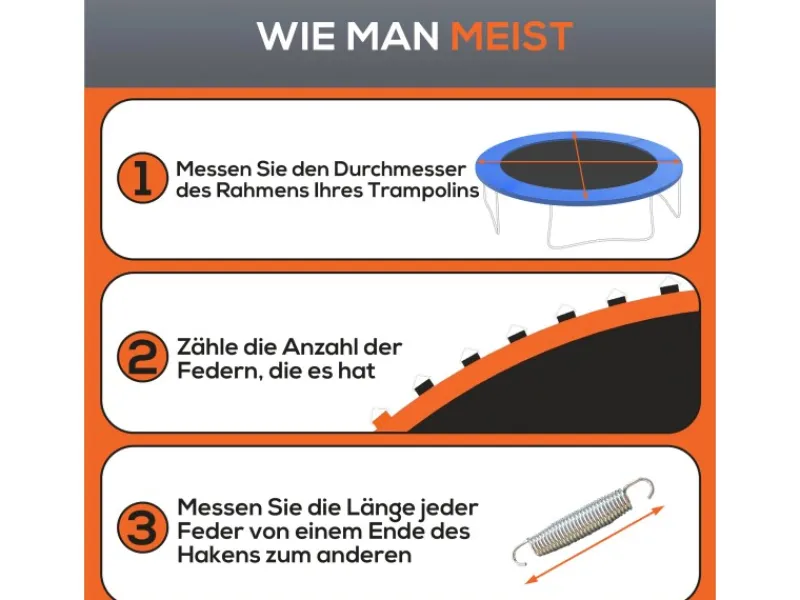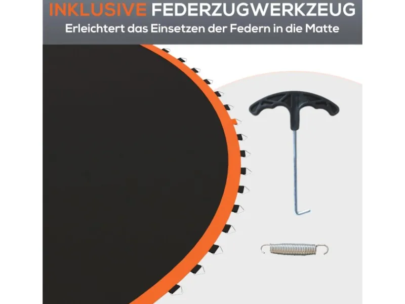● Passt zu einem runden Trampolin mit 3,66 m Durchmesser, 72 V-Ringen und 14 cm langen Federn