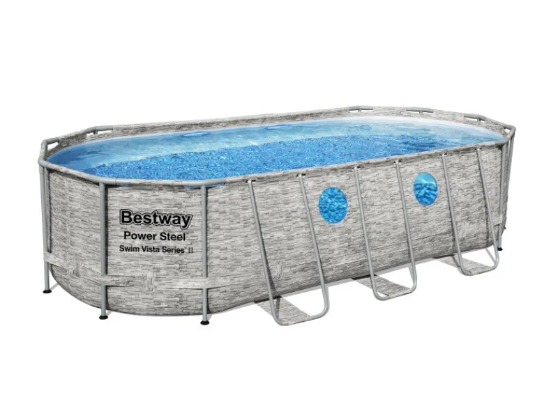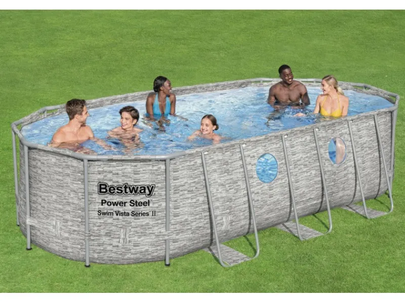 Ausgestattet ist der Stahlrahmenpool mit einem praktischen Sandfilter, der Verschmutzungen entfernt und für klares, sauberes Badewasser sorgt. Zum Schutz vor äußeren Einflüssen ist er ebenfalls mit einer passenden Abdeckung versehen. Ein Chemiedossierer ist auch inklusive. Damit Sie sicher und einfach in den Pool hinein- und aussteigen können, besitzt er eine integrierte Poolleiter. Dieser Pool ist GS-geprüft. Der Pool hat eine Wasserkapazität von 13.430 l sowie Fenster.