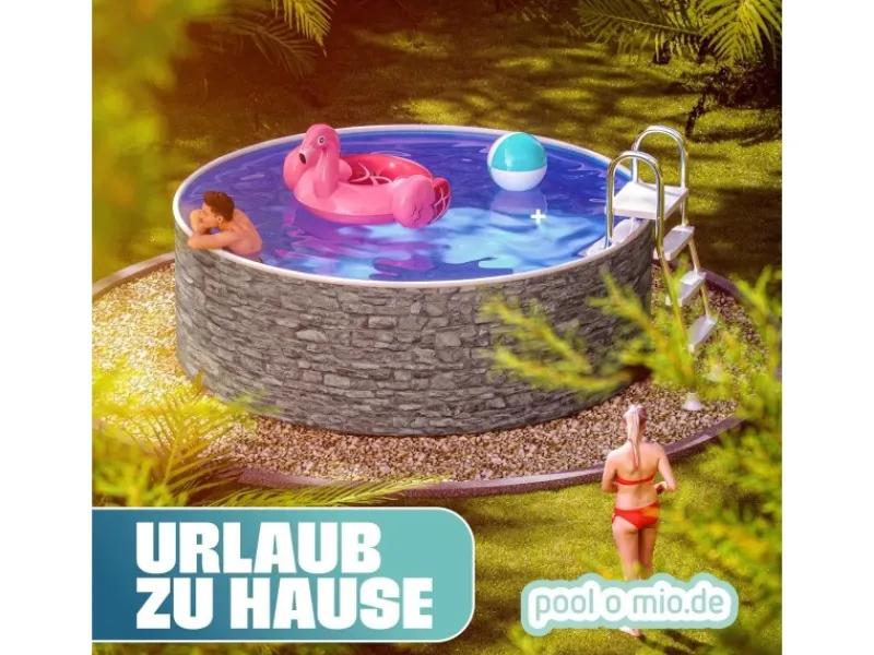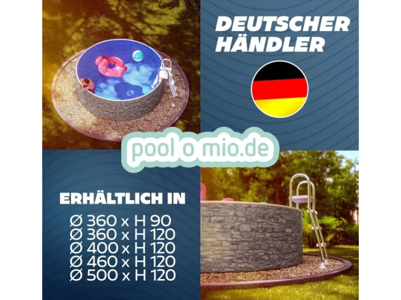 Mit dem runden Stahlwandpool Ø 460 x 120 cm in eleganter Steinoptik setzen Sie ein modernes Statement in Ihrem Garten. Der Pool überzeugt nicht nur optisch, sondern auch durch seine durchdachte Funktionalität und langlebige Qualität.