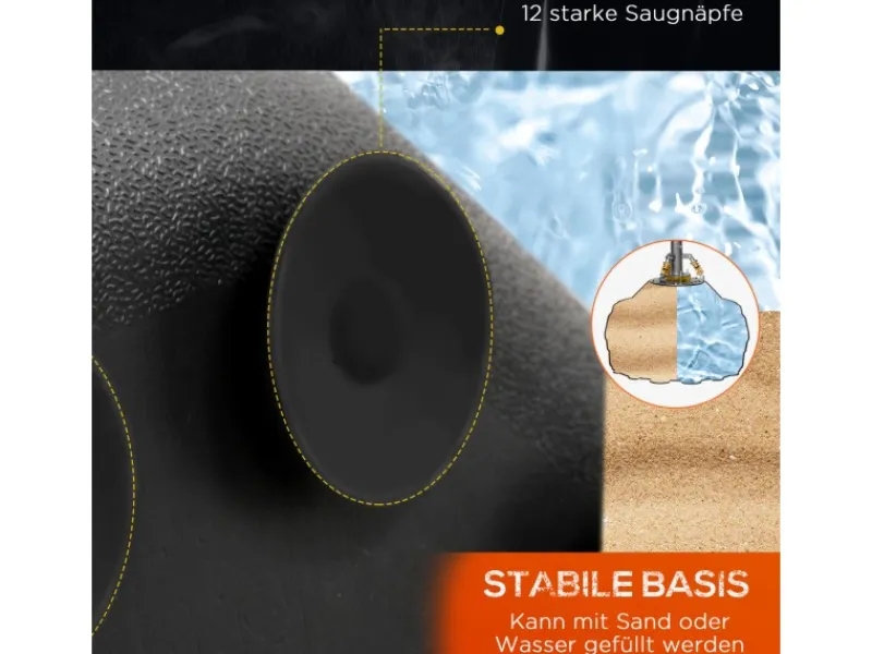 ● Die robuste Basis kann mit Wasser oder Sand gefüllt werden, um die Stabilität zu erhöhen