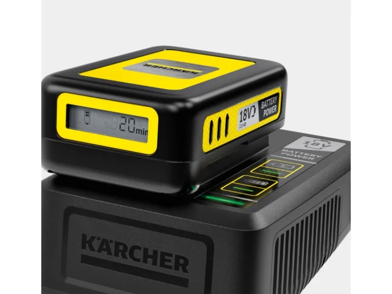 Praktisches Set bestehend aus Akku und Ladegerät für alle Geräte der Kärcher 18-V-Akkuplattform