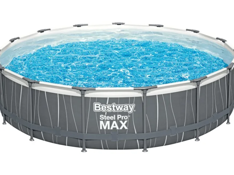 Genieße den Sommer in deinem Bestway Steel Pro MAX Stahlenrahmenpool. Mit seinem Durchmesser von 457 cm bei einer Höhe von 107 cm und seinem Fassungsvermögen von 14,970 Litern (90 %) bietet dieser runde Standpool genug Platz für erfrischenden Badespaß mit Familie und Freunden.