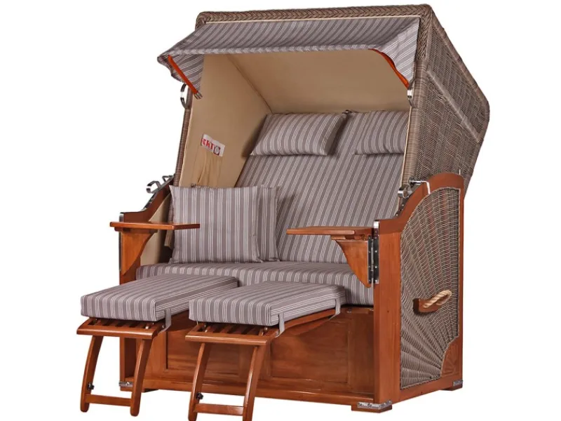 Strandkörbe|bene living Strandkorb Komplettset Schaalsee Mahagoni PE grau Modell 501