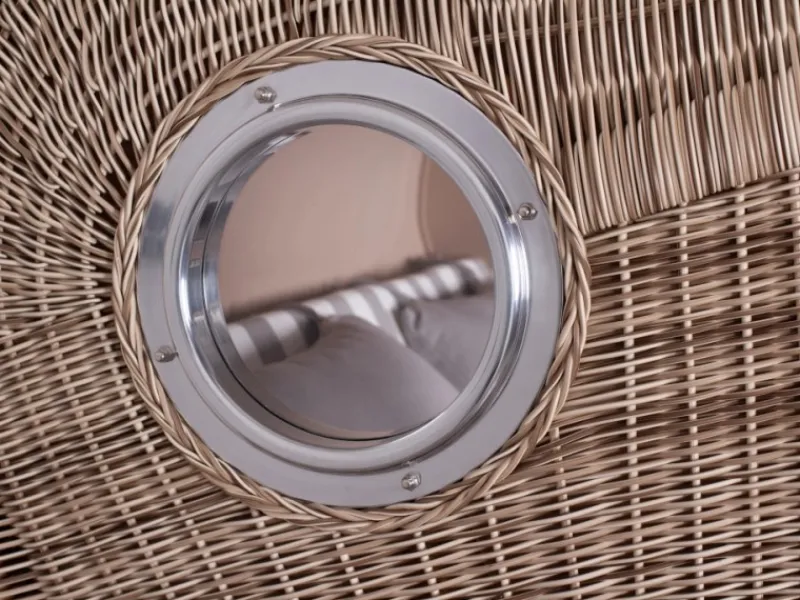 Bullauge aus hochglänzendem Aluminium mit Sicherheitsglas auf jeder Seite
