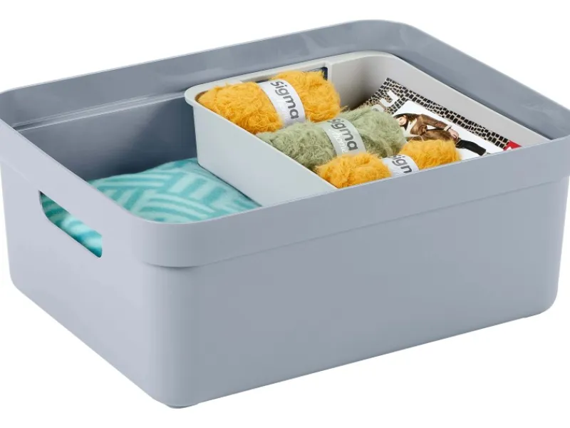 Mit ihrem modischen Design und ihrer luxuriösen Ausstrahlung können Sie diese Sunware Aufbewahrungsbox Sigma Home gut im Wohn- oder Schlafzimmer unterbringen. Diese 24 l Box eignet sich zum Beispiel prima zur Aufbewahrung von herumliegenden Spielzeug, für Ihre Handarbeit und viele Wollknäuel oder für Ihre Lieblingsromane, Zeitungen und Zeitschriften. Und es gibt noch viel mehr Einsatzbereiche, wenn man nur daran denkt, dass wir doch alle eine ganze Menge Dinge in der Wohnung herumliegen haben. Bei allen Sigma Home Boxen sind die Griffe integriert, daher lassen sie sich gut transportieren. Dazu haben sie ein stilvolles Design und sind mit Deckel perfekt stapelbar. Gestalten Sie Ihre Aufbewahrungslösung selbst, mit dem separat erhältlichen, dekorativen Deckel. Geben Sie Ihrer Einrichtung einen Frischekick mit den Sigma Home Boxen.