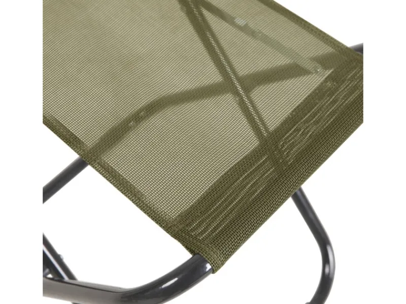 Die Sitzfläche besteht aus einem hochwertigen, atmungsaktiven Kunststoffgewebe und das integrierte Kissen rundet das stilvolle Design ab. Auf dem praktischen Hocker können Sie Ihre Beine hochlegen und diesen bei Bedarf einfach zusammenklappen.