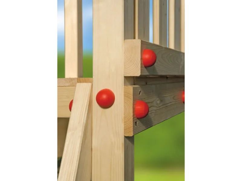 Der Tabaluga Drachenturm mit Pultdach ist der perfekte Aussichtspunkt für Ihre kleinen Klettermeister. Da die Sicherheit beim Austoben der Kleinen an erster Stelle steht, sind alle Kanten mit Sicherheitskappen abgerundet inklusive Sicherheitshaltegriffe. Zudem bietet der Drachenturm durch den 19 mm stabilen Podestboden aus Glattkantbrettern in 150 cm Podesthöhe optimale Stabilität. Für doppelten Spielspaß ist ein Sandkasten im Bausatz enthalten. Der Turm glänzt durch naturbelassenes, gehobeltes Nadelholz. Mit diesem Drachenturm können sich Ihre Kinder ganz groß fühlen und die Welt von oben neu entdecken. Maß über alles 150 x 165 cm, Sockelmaß 124 x 100 cm, Höhe 331 cm.