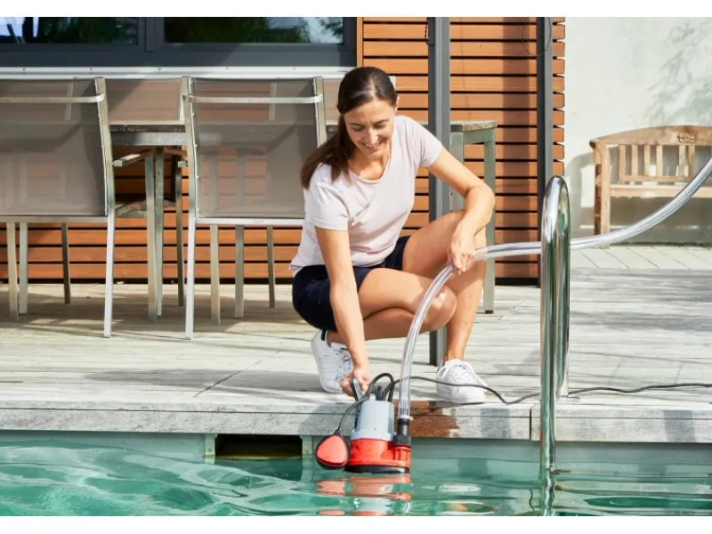 Mit ihren 300 W Leistung, einer Förderhöhe von max. 6 m und der Fördermenge bis 8.500 l/h ist das Aus- und Umpumpen in kürzester Zeit erledigt. Der im großen Pumpenfuß integrierte Pumpenauslass sorgt für beste Leistung. Der Pumpenauslass ist flexibel dank des aufschraubbaren Kombinationsanschlussstücks.