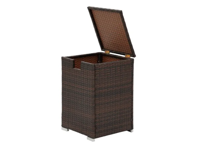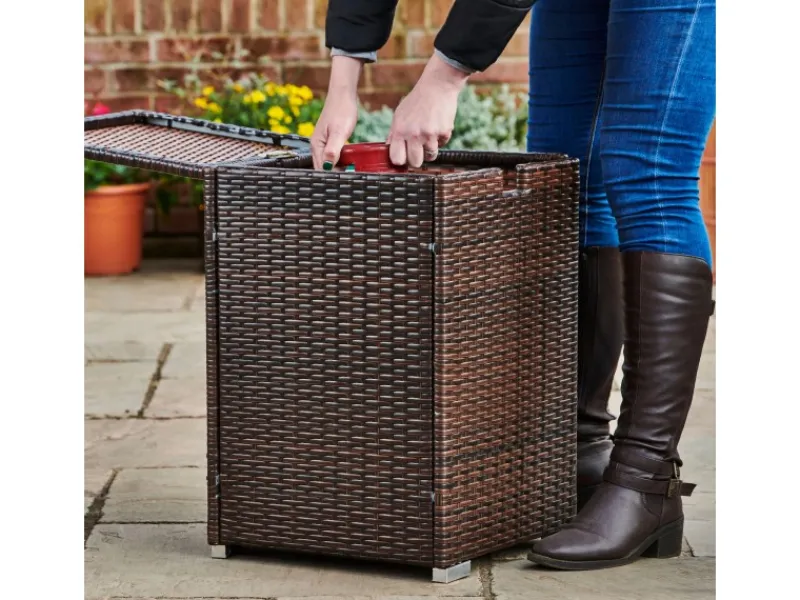 Design: Dunkelbraunes Rattan-Geflecht mit Gasflaschenhalterungsring Klappdeckel und Belüftung