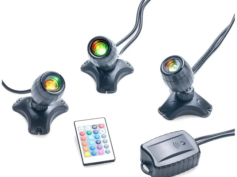 3 Spots mit Trafo und Fernbedienung für stimmungsvolle farbige und weiße LED-Beleuchtung in Teich und Garten