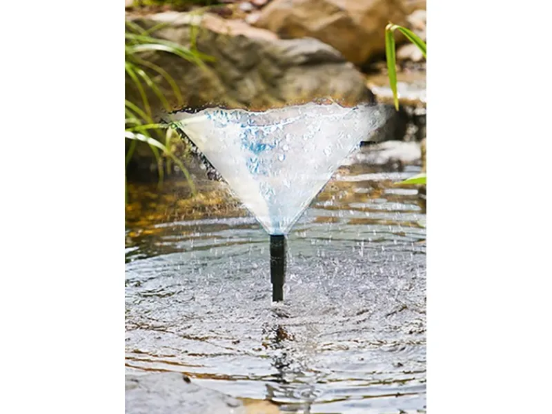 Das Teleskop-Steigrohr der Aqua Jet Pumpe lässt sich zwischen 20 und 48 cm verstellen, sodass du die Höhe flexibel anpassen kannst. Das Set enthält zudem 3 Wasserspielaufsätze für Glocke, Kelch und Kaskade, um verschiedene Wasserspiele zu gestalten.