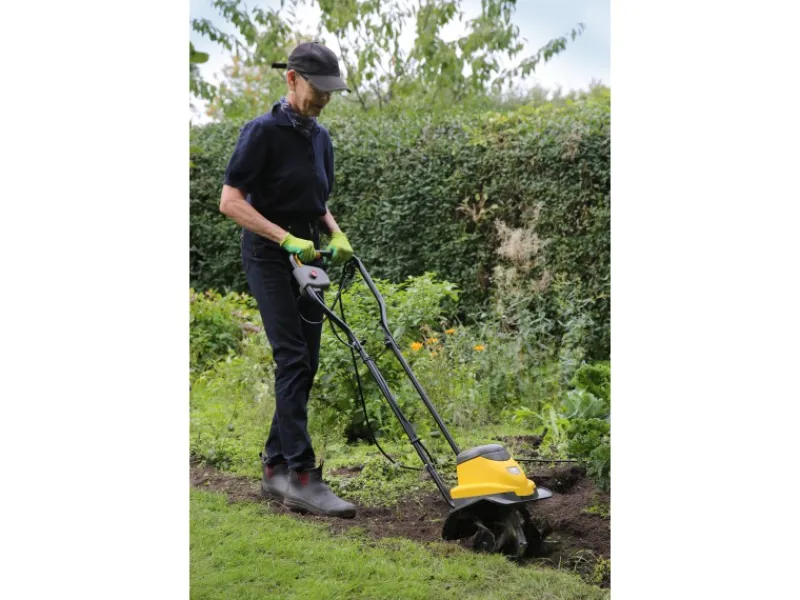 Die Texas Elektro-Motorhacke El-Tex 750 ist eine leichte Motorhacke mit geringer Geräuschentwicklung, die einfach zu bedienen ist. Eine Elektro-Motorhacke eignet sich für die engen stellen wie Blumenbeete, zwischen Gebüschen besonders gut.