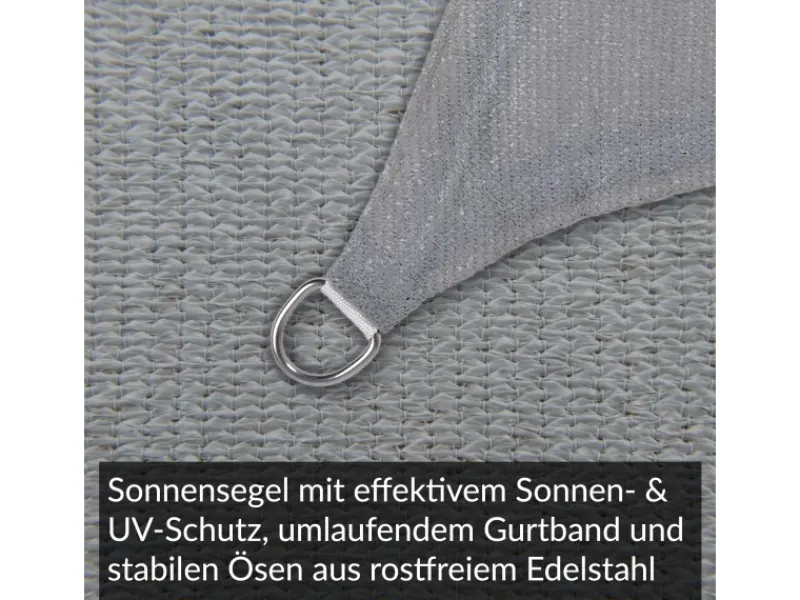 Effektiver Sonnenschutz mit HDPE-SonnensegelUnser HDPE-Sonnensegel bietet zuverlässigen Schutz vor hellem Sonnenlicht und UV-Strahlung. An heißen Tagen sorgt es für angenehmen Schatten auf Terrassen, im Garten oder bei Outdoor-Events. Das konkave Sonnensegel aus hochwertigem HDPE-Netzgewebe blockiert effektiv Sonnenlicht, ist wind- und wasserdurchlässig und bietet einen natürlichen UV-Schutz mit einem Abschattungsfaktor von ca. 85 %. Besonders geeignet ist es für den Einsatz über Spielbereichen von Kindern.Das leichte Polyethylen-Gewebe wird über die gewünschte Fläche gespannt und mit stabilen, ins Gurtband eingearbeiteten D-Ringen an Hauswänden, Masten oder Pfosten befestigt. So entsteht sofort der gewünschte Effekt: angenehmer Schatten, Schutz vor direkter Sonneneinstrahlung und keine Überhitzung darunter.Dank der luftdurchlässigen Struktur verhindert das Sonnensegel einen Hitzestau, wodurch die Luft weiterhin ungehindert zirkulieren kann. Schwitzen, erhitzte Möbel oder aufgeheizte Terrassensteine gehören damit der Vergangenheit an! Zusätzlich bietet das Sonnensegel Sichtschutz – es lässt zwar Luft und Wasser passieren, schützt aber vor neugierigen Blicken. Genießen Sie Komfort, Schutz und Privatsphäre mit diesem vielseitigen Sonnensegel!