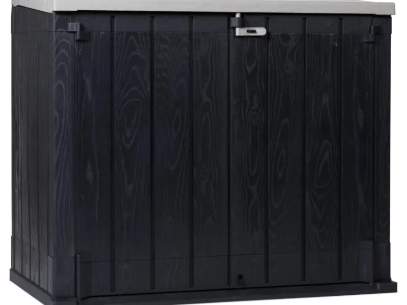 Mit abschließbaren Fronttüren, integrierter Abfalltonnendeckelöffnung und Bodenplatte mit Rampe