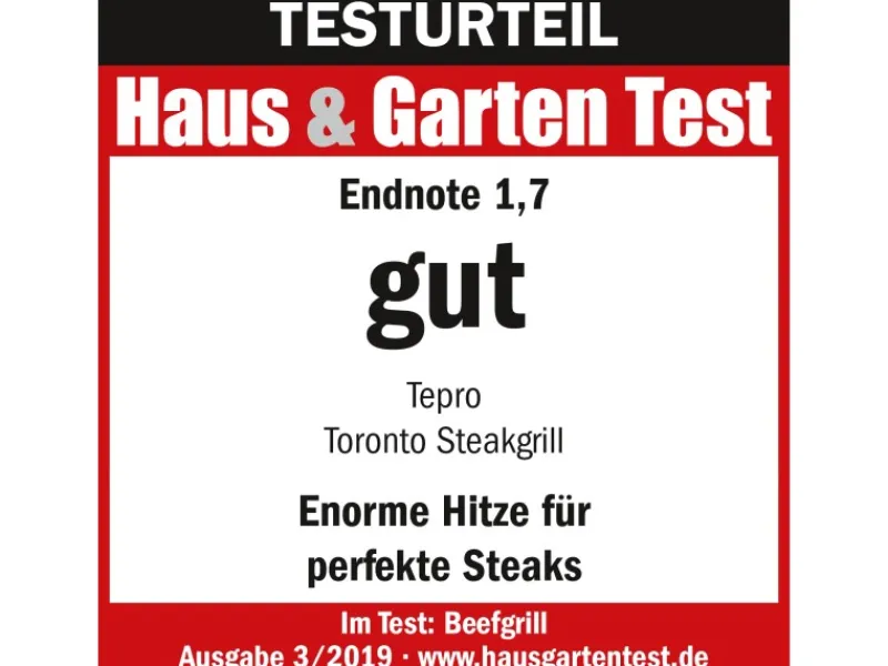 Im Beefgrill-Test des Haus & Garten Tests im Jahr 2019 hat der tepro Toronto Steakgrill mit der Endnote 1,7 abgeschnitten und wurde deshalb als gut bewertet. Als besonders herausragend galt hier die „Enorme Hitze für perfekte Steaks“.