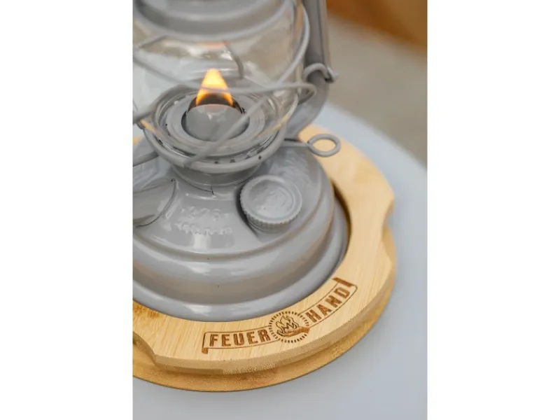 Der Feuerhand Laternenuntersetzer ist die ideale Ergänzung einer zuverlässigen Tischbeleuchtung mit der Baby Special 276 und sorgt für sicheren Stand der Sturmlaterne. Beim Befüllen und Betrieb der traditionellen Sturmlaterne schützt der Laternenuntersetzer den Untergrund vor möglichen Ölrückständen und wird durch eine transparente Schutzschicht auch selbst vor dem Eindringen von Feuchtigkeit bewahrt. Durch die schlichte, zeitlose Formgebung im Feuerhand-Design fügt sich der praktische Untersetzer aus Bambus in jede Tisch- und Gartengestaltung ein. Er lässt sich an den eingearbeiteten Einkerbungen leicht positionieren. Der Untersetzer für die Baby Special 276 zeichnet sich durch seine Langlebigkeit aus und ist durch die Schutzschicht einfach mit einem feuchten Tuch zu reinigen. Gemütliche Sitzecken und gedeckte Gartentische werden durch die Baby Special 276 im passgenauen Untersetzer perfekt ergänzt und individuell beleuchtet.