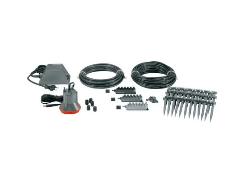 Das Pflanzenbewässerungs-Set von Gardena verfügt über einen Transformator mit integriertem Zeitschalter. So wird die Bewässerung täglich für 1 Minute aktiviert. Je nach Wasserbedarf kann mehr als ein Verteiler pro Topf verwendet werden. Zusätzlich lässt sich die Wassermenge pro Minute auf 15, 30 oder 60 ml einstellen. Insgesamt verfügt das Urlaubsbewässerungs-Set über 3 verschiedene Verteiler mit je 12 Ausgängen. Der gekapselte Niederspannungstransformator kann sowohl drinnen als auch draußen verwendet werden.