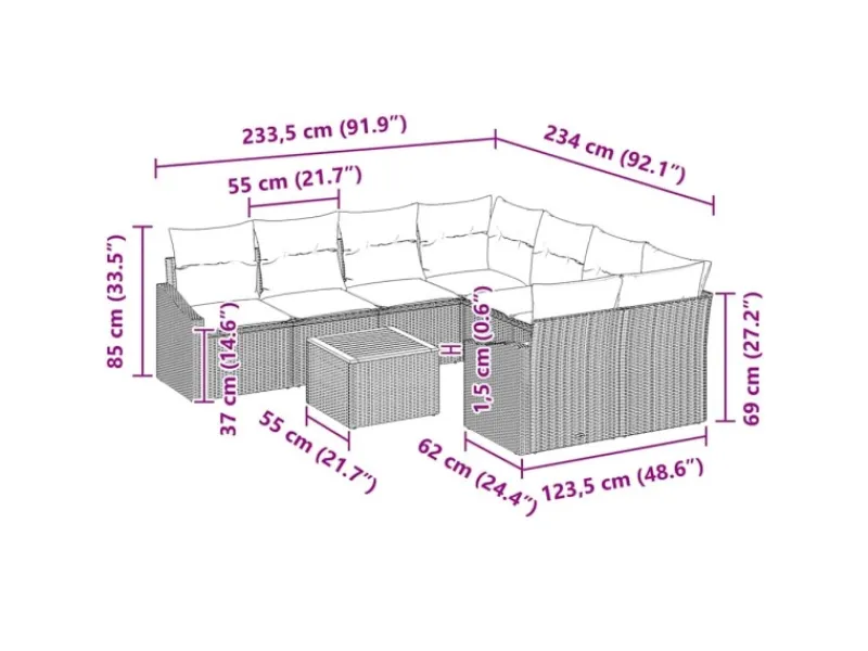 Gesamtabmessungen: 55 x 55 x 37 cm (L x B x H)