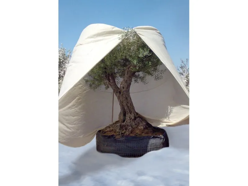 Die Videx Winterschutz Vlieshaube Mediterran ist extra groß und aus einfarbigem Vlies (Stärke 70 g/m²). Sie bietet sehr großen Pflanzenkronen im Winter effektiven Schutz vor Frost, Schnee und Austrocknung durch intensive Sonneneinstrahlung. Sie ist geeignet für Pflanzen bis zu einem Durchmesser von 250 cm. Zur einfachen Anwendung ist an der Seite ein Reißverschluss integriert. Unten kann die Haube mit einer Zugkordel verschlossen werden.