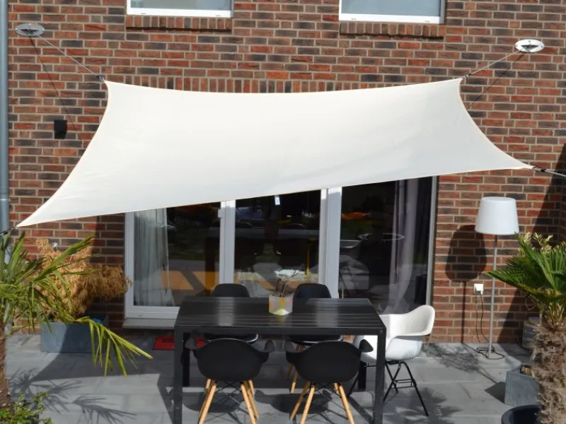 Das Segel zum Winter hin und bei Unwetter- und Sturmwarnungen abnehmen.