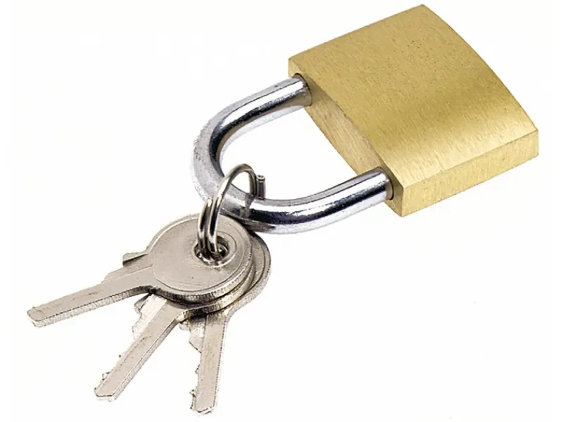 Vorhängeschloss aus Messing mit 3 Schlüsseln.