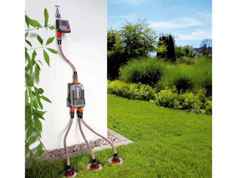 Je nach Bedarf können entweder alle 6 Ausgänge des Wasserverteilers oder weniger als 6 genutzt werden. Die nicht gebrauchten Ausgänge sind dabei lediglich per Stellhebel zu verschließen. Der Wasserverteiler automatic benötigt nicht viel Platz dank der Anbringung aller Ausgänge auf derselben Seite und kann entweder an einer Wand oder auf dem Boden angebracht werden. Bei Bedarf ist er jederzeit von der Befestigungsplatte abnehmbar.