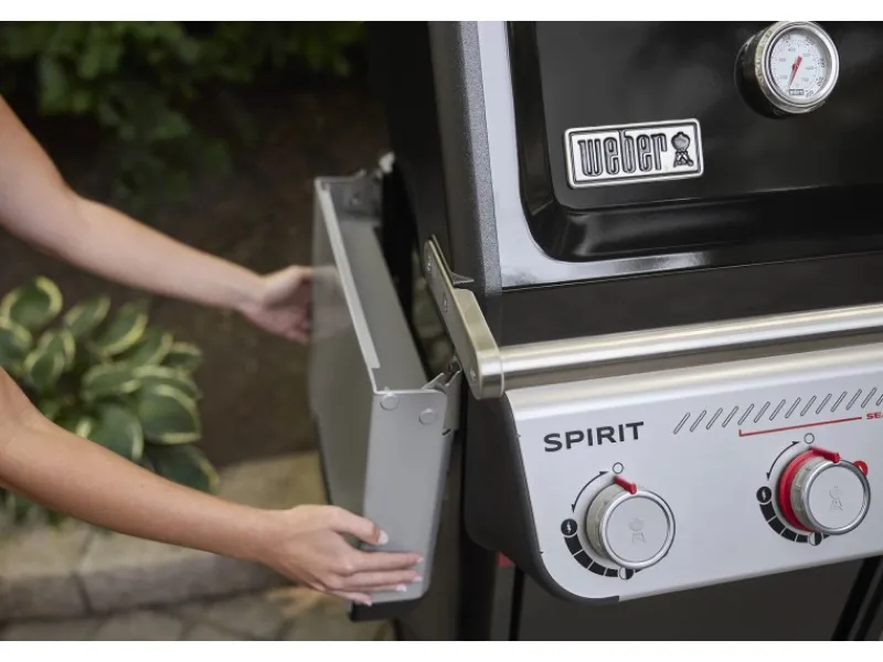 Die klappbaren, lackierten Seitenflächen mit integrierten Leisten können zum Abstellen von Gewürzen oder Zutaten genutzt werden und bieten Platz für Weber Works-Zubehör (separat erhältlich). Die 5 kg Gasflasche findet verdeckt im Unterschrank ihren Platz. Die geschlossene Front mit Tür rundet das Design ab und bietet nützlichen Stauraum. Durch die zwei großen Räder verfügt der Weber Grill über mehr Mobilität und Stabilität und ist schnell einsatzbereit.