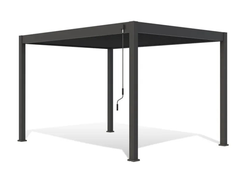 Die hochwertigen Aluminiumlamellen lassen sich bequem und stufenlos einstellen. Im Handumdrehen verändern Sie synchron den Neigungswinkel aller Lamellen und bestimmen hierdurch den passenden Lichteinfall. Somit lassen sich herrliche Lichtstimmungen erzeugen. Natürlich schützt Sie der Pavillon auch optimal gegen UV-Strahlung. Bei vollständig geschlossenen Lamellen bietet die Pergola Schutz vor Sonne und leichtem Regen. Die integrierte Regenrinne sorgt dabei dafür, dass Regenwasser kontrolliert über das Innere der Aluminium-Pfosten abgeleitet wird.