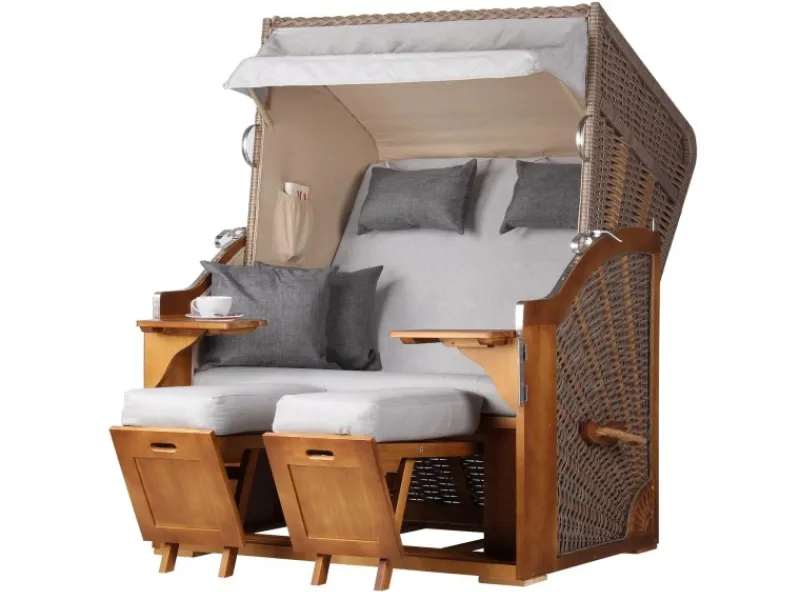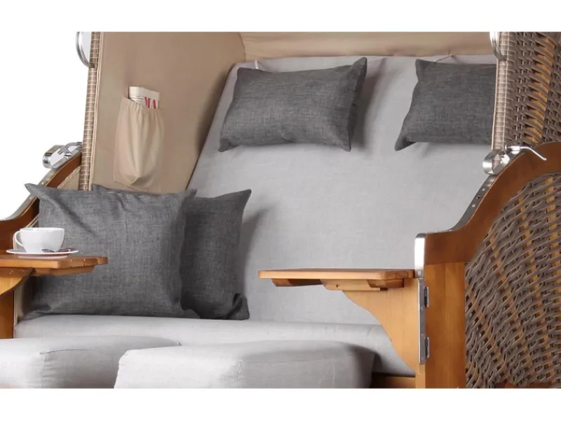 Ausziehbare Fußstützen, verstellbare Rückenlehne, schwenkbare XL Bistrotische